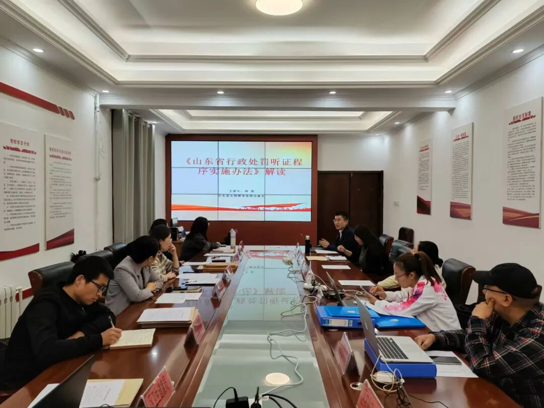 区委区政府法律顾问、山东龙头律师事务所刘勇律师对《山东省行政处罚听证程序实施办法》进行了重点解读,主要围绕修改实施办法的出台背景、主要修改内容、修改前后对照及制作听证文书范本进行展开。山东金罡律师事务所胡斌律师针对实践中如何规范开展听证程序进行了讲解。