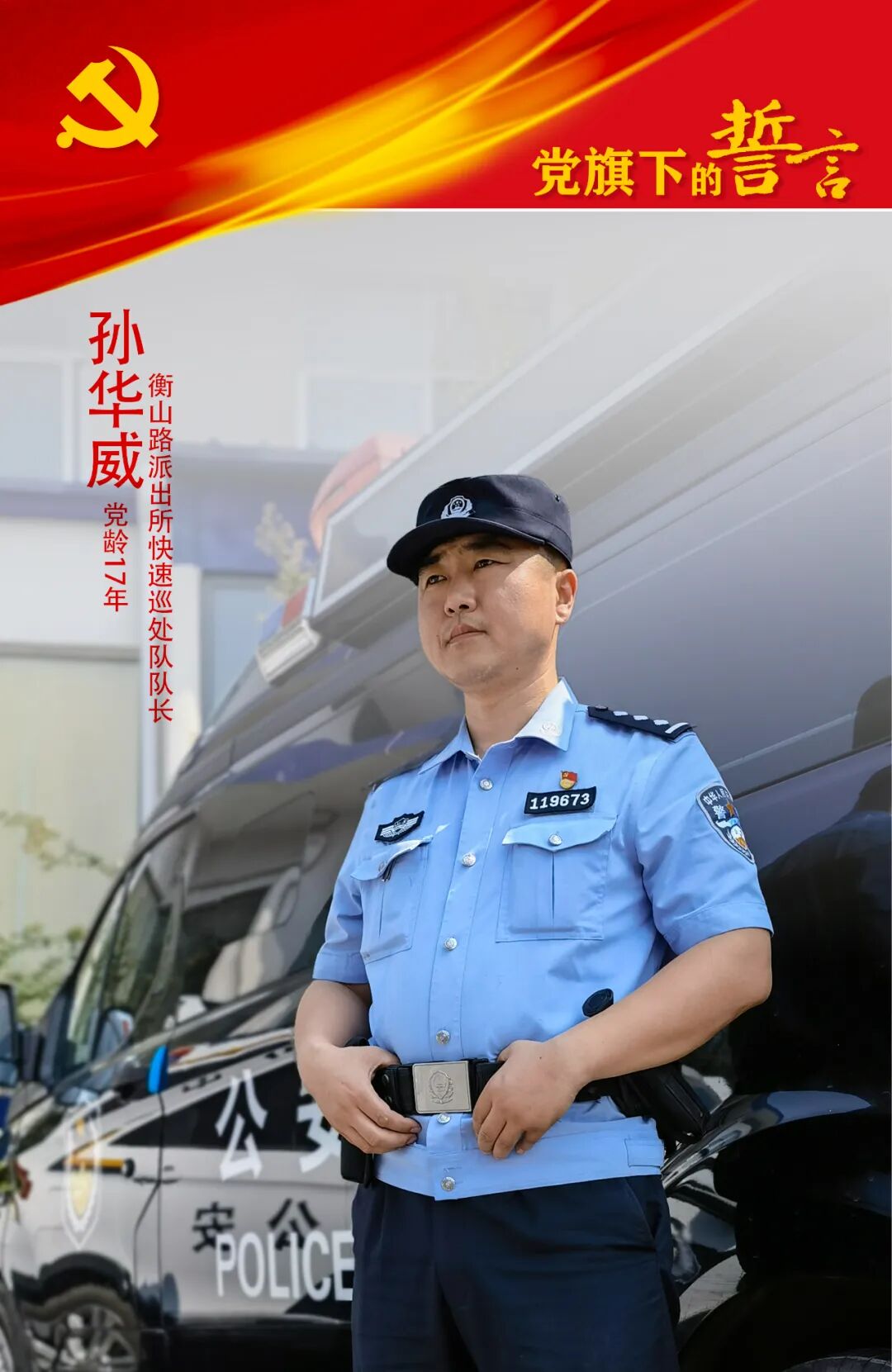 【党员档案】马永良,党龄16年,特警大队三级警长。光阴荏苒,岁月如梭。从南湖红船走来的您,带领中华民族这艘巍巍巨轮,劈波斩浪,奋勇向前,已经走过了103年的光辉岁月!103年的栉风沐雨,103年的励精图治,如今,我们正走在实现第二个一百年奋斗目标的伟大征程上!沐浴着党的阳光,我也一路成长!2017年,我从军营走进警营,脱掉了橄榄绿,穿上了警服蓝,改变的是服装的颜色,不变的是永远全心全意为人民服务的初心!如今,作为一名基层民警,我积极争当党员先锋,坚守“一名党员、一面旗帜”的信条,不断提高政治站位,强化责任担当,始终把人民群众的利益放在首位,争取在平凡的岗位上做出不平凡的业绩!【党员档案】陈金祥,党龄22年,交警大队事故处理中队长。不忘初心,牢记使命,中国共产党才能在极端困境中发展壮大,才能在濒临绝境中突出重围,才能在困顿逆境中毅然奋起。实践反复证明,中华民族伟大复兴的中国梦,只有在中国共产党的领导下才能实现。开启新征程,我们更需要在党的坚强领导下,立足新发展阶段,贯彻新发展理念,构建新发展格局,作为一名交警事故处理民警,我会时刻坚守在事故处理第一线,在平凡的岗位上踏踏实实工作,全力保障着人民群众的合法权益,为全面建成社会主义现代化强国、实现中华民族伟大复兴不懈奋斗。【党员档案】孙华威,党龄17年,衡山路派出所快速巡处队队长。中国共产党在中国风雨飘摇、外敌恃强凌弱之际,毅然决然地肩负起民族复兴的神圣使命。在一次次血与火的淬炼与砥砺中,与中华民族同进步、共成长。共产党人的勤劳、智慧、坚毅一代代薪火相传,正气凛然、公而忘私、舍生忘死的大无畏气概成为铭刻在人们灵魂深处的烙印。我们党坚持站在历史的高度,走在时代的前列,勇当舵手,引领航向,不断取得革命、建设和改革的一个又一个胜利。作为一名普通共产党员,“随时准备为党和人民牺牲一切”的誓言、“抛头颅洒热血”的担当和“砍头不要紧,只要主义真”的决绝,一直激励和鼓舞着我奋勇前进。今后我要结合工作实际,更加坚定了马列主义信仰,更牢固爱党、爱国、爱人民理想信念,学习革命先辈的坚定信念、不懈奋斗的顽强作风、服从纪律的崇高品格、不怕牺牲的奉献精神,使之转化为永葆共产党员先进性的自觉性。认认真真,兢兢业业做好自己的本职工作,做一个无愧于先烈,无愧于这个时代的优秀党员。千秋伟业、百年风华。中国共产党成立103周年,103年披荆斩棘,风雨兼程,103年不忘初心,砥砺前行。中国共产党历经百年淬炼,形成了坚持真理、坚守理想,践行初心、担当使命,不怕牺牲、英勇斗争,对党忠诚、不负人民的伟大建党精神。作为基层派出所的一名党员民警,我将继续立足岗位、扎实工作,继续传承好先辈红色信仰,发挥党员先锋模范作用,用人民公安为人民的初心使命,矢志不渝、笃行不怠,坚决完成党和人民赋予的光荣使命和任务。