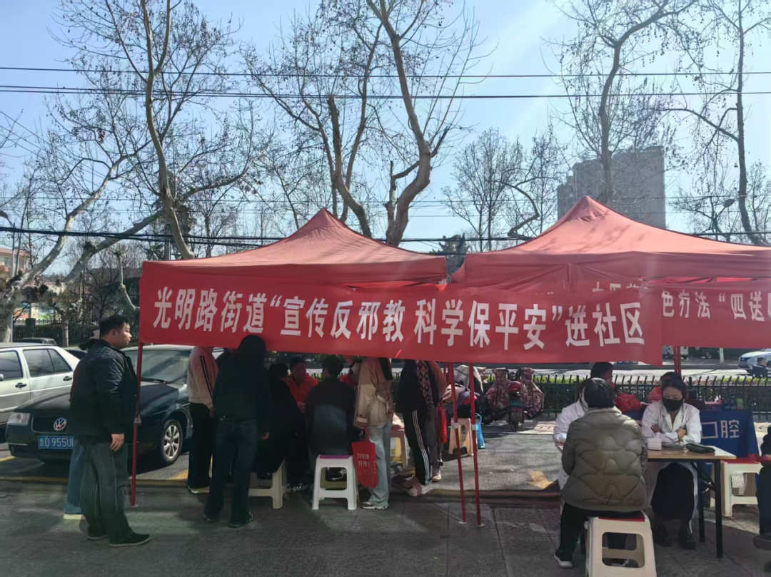 区法学会联合光明路街道开展了反邪教宣传活动,向周边群众普及反邪教法律法规,结合典型案例讲解反邪教知识,帮助群众深刻认识到邪教的本质、特征及危害,并呼吁大家如遇到邪教违法活动,积极向公安机关检举,共同维护社会稳定。