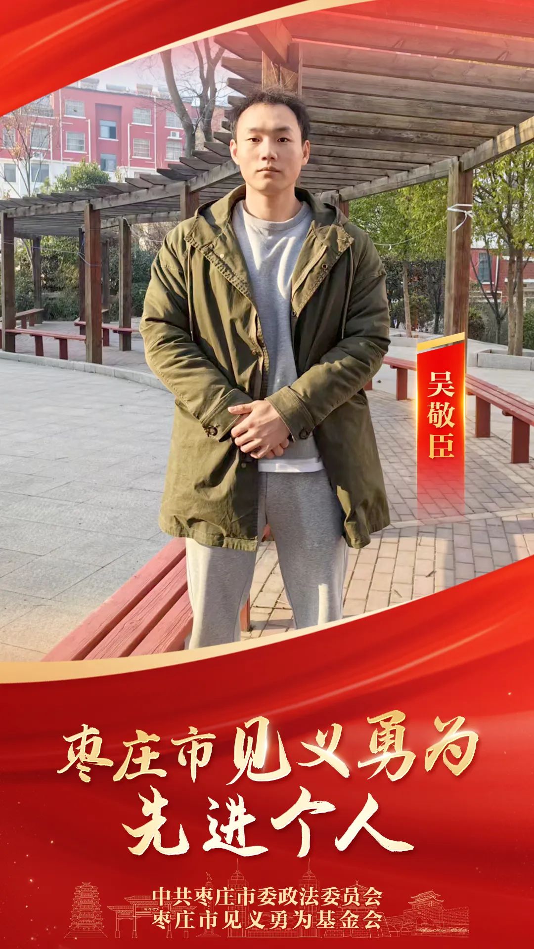 吴敬臣,男,汉族,2002年7月生,峄城区阴平镇燕庄村村民。