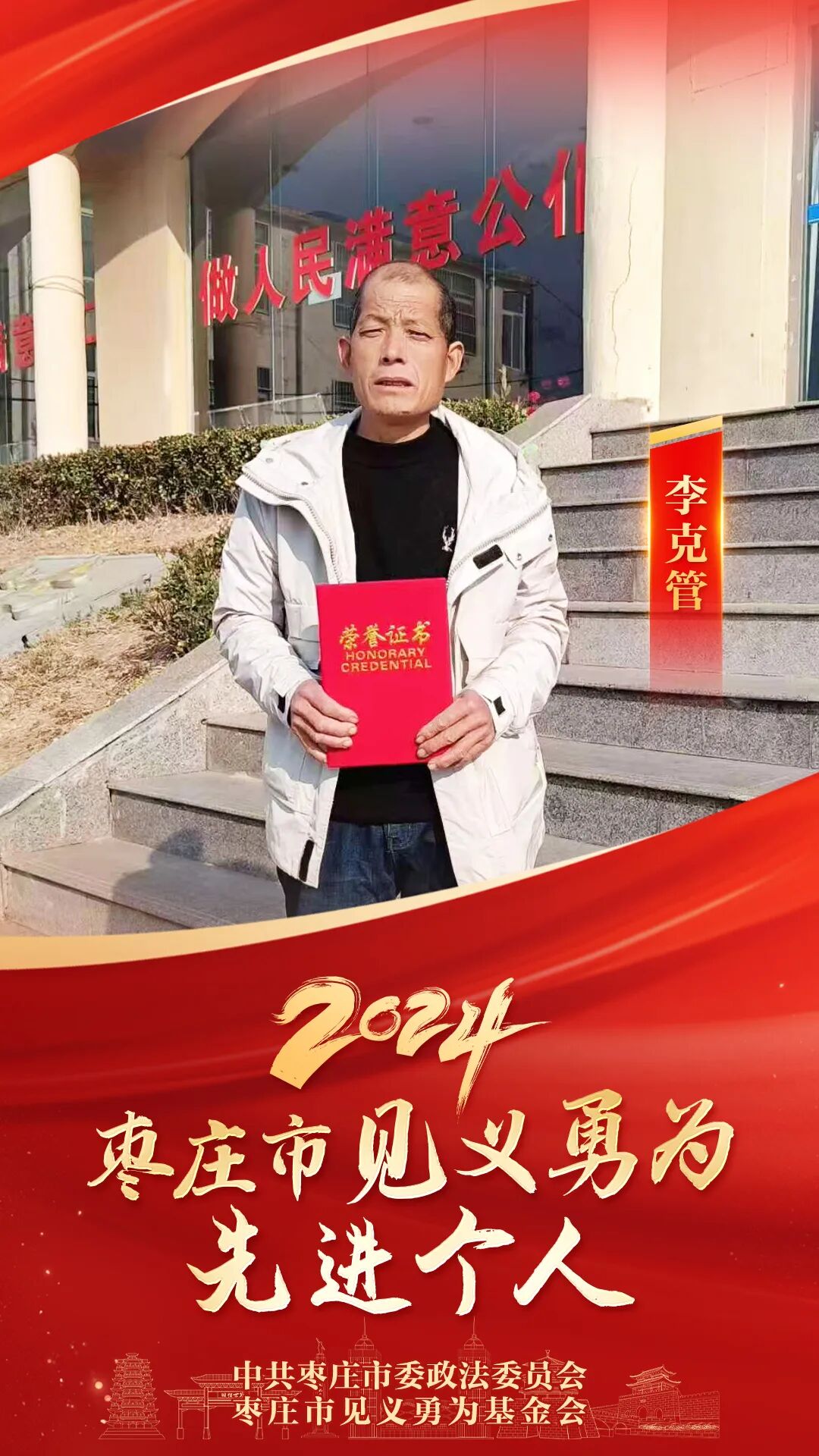 李克管,男,汉族,1975年12月生,山亭区北庄镇毛宅村村民。