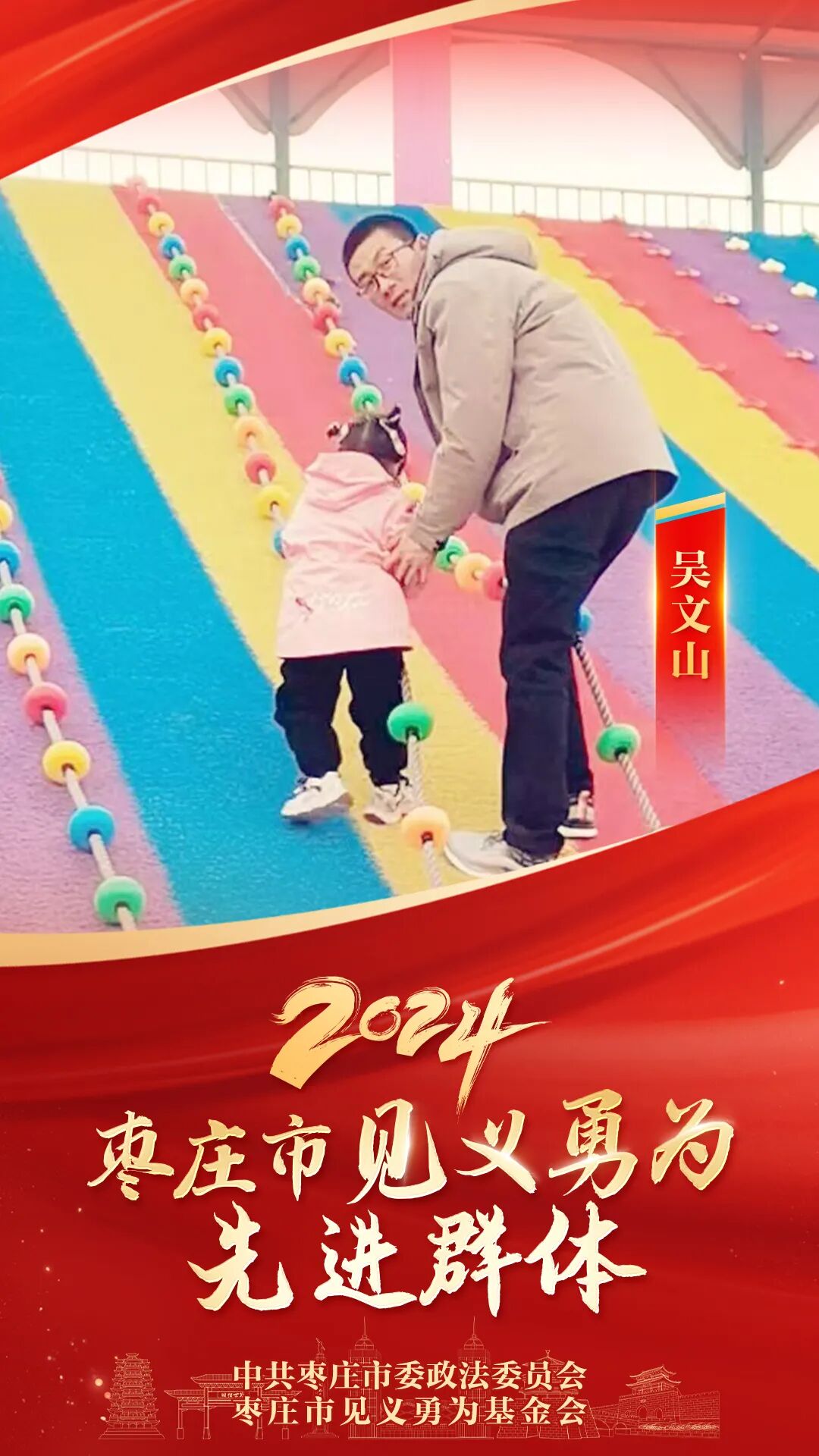 吴文山,枣庄市第80例造血干细胞捐献者,男,汉族,群众,1987年7月生,滕州市北辛街道新龙巷社区居民,捐献时间:2024年10月30日。