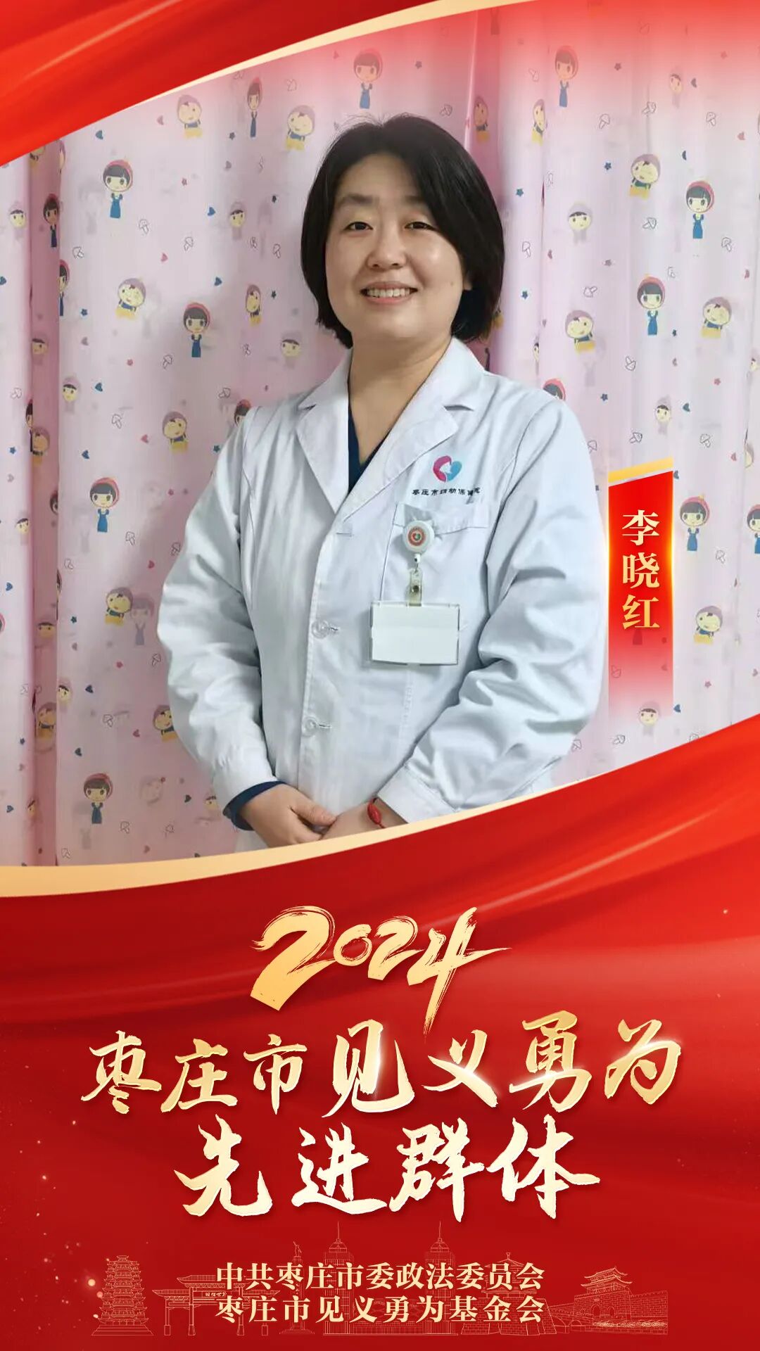 李晓红,枣庄市第79例造血干细胞捐献者,女,汉族,群众,1984年8月生,枣庄市妇幼保健院超声科主治医师,捐献时间:2024年9月9日。