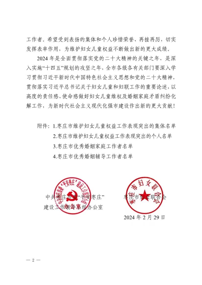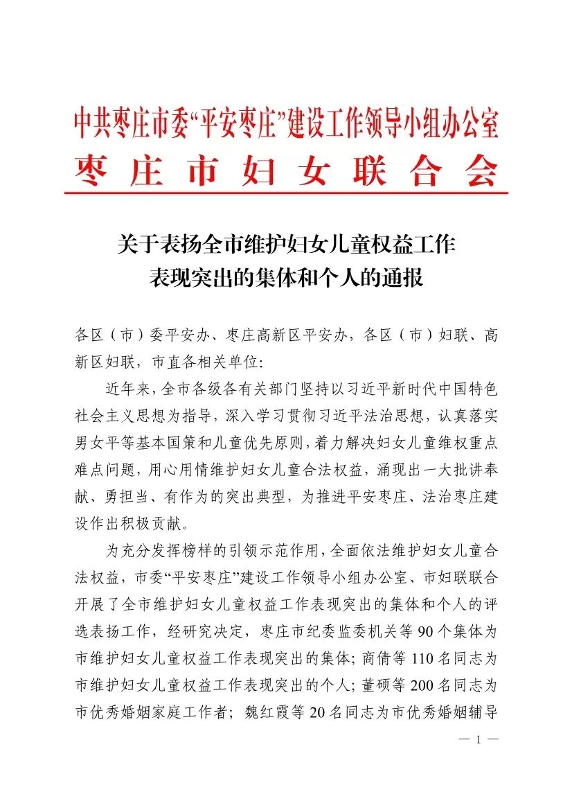 在第114个“三八”国际妇女节来临之际,为深入学习贯彻党的二十大精神和习近平总书记关于妇女儿童和妇联工作的重要论述,做好依法维护妇女儿童权益工作,3月4日,枣庄市维护妇女儿童权益部门联防联动暨婚姻家庭矛盾纠纷化解工作推进会议召开。 市委政法委副书记李桂林出席会议并讲话,市妇联党组书记、主席鲁海燕主持会议。市法院党组成员、副院长姜传兴,市检察院党组成员、副检察长张文亮,市委网信办副主任朱新茂,市残联党组成员、副理事长萧飞,市教育局党组成员、副局长朱卫,市司法局党组成员、市公共法律服务中心主任李长青,市妇联党组成员、副主席孔娜,市公安局治安支队支队长张兆文等领导出席会议。市、区(市)两级联防联动成员单位的分管负责人和业务科室负责人,以及受表扬的全市维护妇女儿童权益表现突出的集体和个人代表共110余人参加会议。 市委政法委副书记李桂林 李桂林强调,要提高政治站位,增强维护妇女儿童合法权益的思想自觉。积极开展婚姻家庭矛盾纠纷排查化解,依法严厉打击侵害妇女儿童合法权益行为,推动联防联动工作机制进一步落地生根,更好地促进妇女全面发展、儿童健康成长。要突出重点任务,提升维护妇女儿童合法权益的工作质效。注重关口前移,普法宣传多元化。把保护妇女儿童权益宣传教育纳入普法重点内容,推进妇联“法律明白人”培养工程扩面提质增效。加强源头预防,隐患排查常态化。对标对表省市考核重点补齐短板弱项,广泛开展“幸福护航”女性心理健康呵护行动,推动“阳光家事”婚姻家庭纠纷调解活动走深走实。畅通维权渠道,联动处理及时化。坚持实行“优先立案、优先审理、优先执行”原则,为妇女儿童维权提供司法保障,协同社会力量共同推进反家暴等工作。完善社会救助,关爱帮扶精准化,立足单位部门职能,多做扶弱帮困、雪中送炭、化解矛盾和凝聚人心的工作,把党的关怀和温暖送到最需要的妇女儿童身边。要加强统筹配合,凝聚维护妇女儿童合法权益的工作合力。市妇联要发挥牵头抓总、协调服务职责,各相关部门要把维护妇女儿童合法权益工作纳入重要议事日程,纳入市域社会治理工作的总体部署,整体推进,同步发展,形成有关部门和全社会共同推进维护妇女儿童合法权益工作的良好格局。 市妇联党组书记、主席鲁海燕 鲁海燕强调,要高度重视,久久为功,凝聚工作合力。维护妇女儿童权益工作是一项涉及多部门、各层面、宽领域的系统工程,各成员单位要凝心聚力、整合资源,形成联防联动、群策群力、共同推进的工作格局。要明确责任,强化担当,狠抓工作落实。将涉及妇女儿童权益问题解决在基层,把矛盾纠纷和风险隐患化解在萌芽,最大限度维护好妇女儿童的合法权益。要齐抓共管,创新联动,确保工作实效。紧扣婚姻家庭矛盾纠纷化解考评内容,不断探索新形式下做好妇女儿童权益维护工作的新思路、新办法,创新维权联动新模式,以更大力度更实举措实现好、发展好、保障好广大妇女儿童的根本利益。 会上,通报表扬了全市维护妇女儿童权益工作表现突出的集体和个人。 市法院党组成员、副院长姜传兴 市司法局公共法律服务管理处处长王立军 枣庄市维护妇女儿童权益工作表现突出的集体和个人代表发言。 市检察院党组成员、副检察长张文亮 市委网信办副主任朱新茂 市残联党组成员、副理事长萧飞 市教育局党组成员、副局长朱卫 市公安局治安支队支队长张兆文 市联防联动成员单位交流发言。 市司法局党组成员、市公共法律服务中心主任李长青 市司法局党组成员、市公共法律服务中心主任李长青传达《关于印发<枣庄市“1名村(居)法律顾问+2名法治带头人+N名法律明白人”行动方案>的通知》。 市妇联党组成员、副主席孔娜 市妇联党组成员、副主席孔娜传达《关于全市婚姻家庭矛盾纠纷化解等考评工作的相关建议》。 会上,书面传达了省妇联、省司法厅《关于进一步推进妇联“法律明白人”培养工程扩面提质增效的通知》;省妇联、省委政法委、省卫健委《关于深化婚姻家庭矛盾纠纷化解工作开展“幸福护航”女性心理健康呵护行动的通知》。 下一步,市妇联将持续推进维护妇女儿童部门联防联动工作机制作用发挥,切实保障好妇女儿童合法权益。一是创新形式开展法治宣传教育。利用“三八”节、宪法日、反家暴日等重要节点,开展“巾帼普法乡村行”活动,将普法宣传与权益维护结合起来,不断提高普法针对性和实效性,切实提升妇女群众法治素养,不断深化“建设法治枣庄·巾帼在行动”品牌。二是发挥优势参与基层社会治理。坚持和发展新时代“枫桥经验”,深入推进婚姻家庭矛盾纠纷排查化解工作,持续深化“幸福护航”婚姻家庭辅导行动,切实把风险隐患化解在萌芽、解决在基层,为平安枣庄建设夯实家庭基础。三是实施妇联“法律明白人”培养工程。联合司法部门实施“1名村(居)法律顾问+2名法治带头人+N名法律明白人”行动,组织动员妇联干部参加“法律明白人”培训,力争2024年底实现村(居)妇联主席“法治带头人”全覆盖,力争2025年底实现村(居)妇联执委“法律明白人”全覆盖。 来源:枣庄妇联享