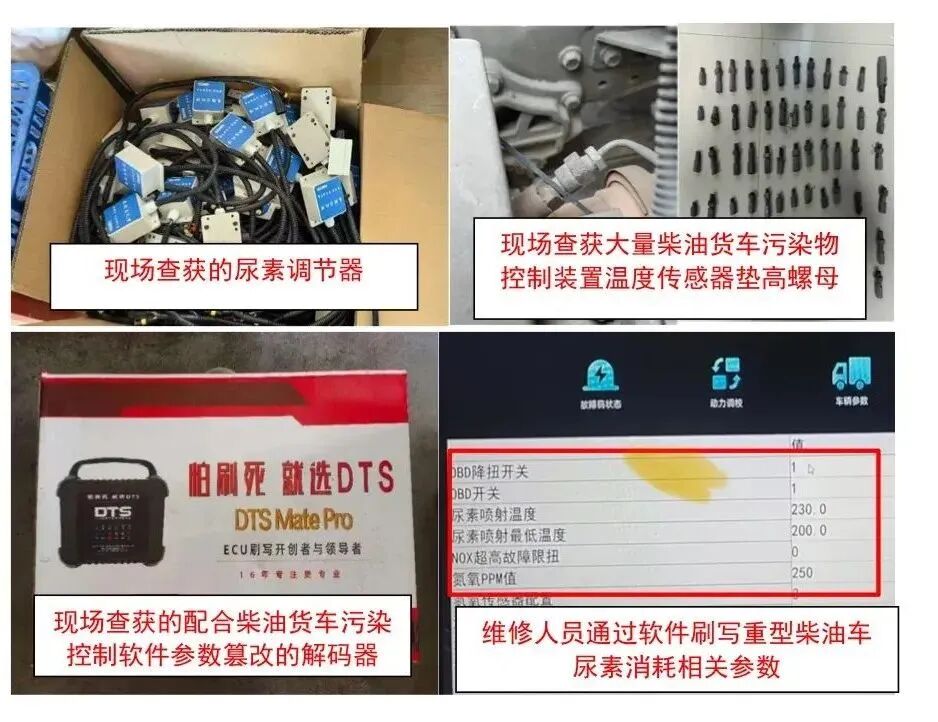 【案情简介】 山东省枣庄市生态环境局在开展柴油货车专项行动时发现,多辆重型柴油货车使用具有作弊功能的“尿素调节器”,可在不使用尿素处理污染物的情况下正常行驶,造成污染物未经处理直接排放。枣庄市生态环境局随即将该线索移交市公安局开展摸排,发现某汽车维修站销售作弊装置,并为多辆重型柴油货车提供刷写车载排放诊断系统(OBD)和发动机电子控制单元(ECU)参数、垫高传感器等违法改装服务。 枣庄市公安局联合生态环境局组成专案组,先后赴3省5市,进一步围绕作弊软、硬件生产环节进行溯源排查。查获广东深圳、北京等两个软件公司生产销售刷机软件,可屏蔽重型柴油货车尿素喷射异常信号,帮助车辆规避使用污染控制装置。同时,还查获河北沧州某公司制作销售尿素调节器。经排查,近4000个汽车维修站使用作弊软硬件,涉及重型柴油车6000余辆。 【查处情况】 根据《中华人民共和国刑法》第二百八十五条、第二百八十六条规定,作弊软硬件生产厂商涉嫌构成提供侵入、非法控制计算机信息系统程序、工具罪,以及破坏计算机信息系统罪。枣庄市公安局市中分局对15名犯罪嫌疑人立案并实施强制措施,查获尿素调节器1135个、诊断解码器2台。目前,该案件已移交检察院审查起诉。 【案件启示】