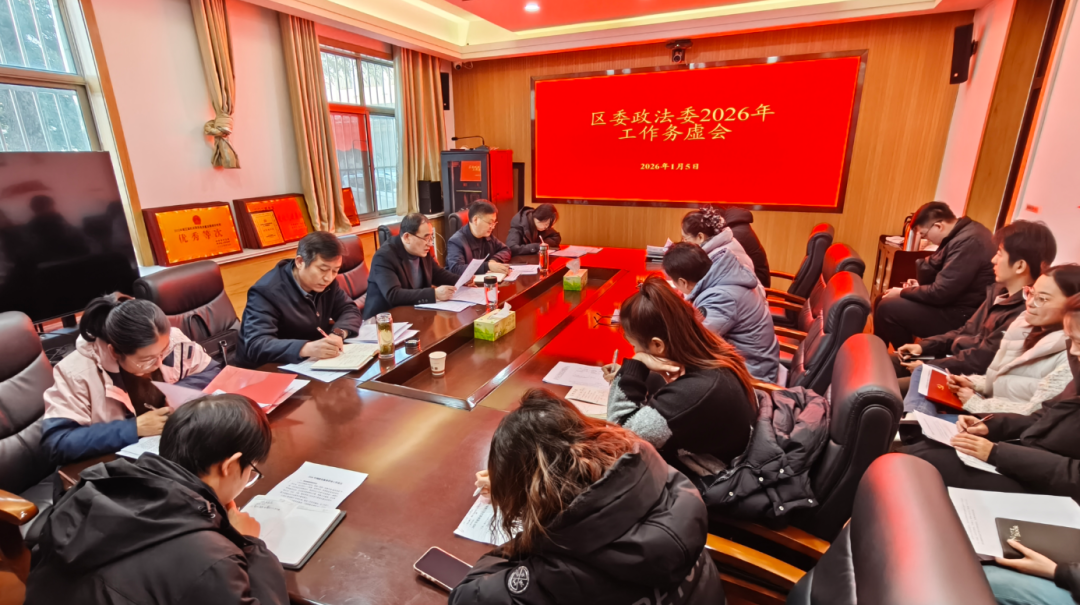 1月5日,区委政法委召开2026年工作务虚会,深入学习贯彻区委十届八次全体会议暨区委经济工作会议精神,系统谋划2026年政法工作。区委政法委分管日常工作的副书记侯宗成主持会议并讲话。法学会、综治中心全体科级干部和科室负责人参加。 会议强调,做好新时代政法工作,必须将党的绝对领导作为最高原则和根本保证,在强化政治引领上达到新高度。平安是最大的民生,必须坚持和发展新时代“枫桥经验”,以“主动创稳、主动作为”的姿态,建设更高水平的平安市中,在维护安全稳定上展现新作为。基层治理是国家治理的基石,必须推动社会治理重心下移、力量下沉,不断提升法治化、精细化、智能化水平,在夯实治理根基上实现新突破。事业兴衰,关键在人,面对新形势新任务,必须以自我革命的精神加强队伍建设,破解可能存在的“本领恐慌”,在锻造过硬队伍上激发新动能。