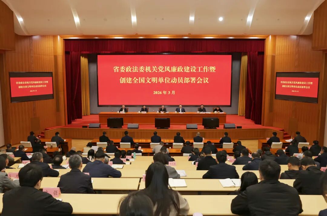 3月19日,省委政法委召开机关党风廉政建设工作暨创建全国文明单位动员部署会议,认真学习贯彻习近平总书记重要讲话精神,深入贯彻落实二十届中央纪委五次全会和十二届省纪委五次全会精神,深入学习贯彻全省机关党的工作暨省直机关纪检工作会议精神,对委机关党风廉政建设工作和全国文明单位创建工作进行安排部署。省委政法委分管日常工作的副书记郭晓东出席会议并讲话。 会议指出,去年以来,委机关坚持以习近平新时代中国特色社会主义思想为指导,扎实开展深入贯彻中央八项规定精神学习教育,思想政治建设更加扎实,落实管党治警责任更加有力,基层组织基础更加坚实,纪律作风更加严明,党建引领作用更加彰显,全面从严治党和党风廉政建设取得新成效。 会议强调,2026年是“十五五”规划开局之年,要认真落实中央纪委五次全会、省纪委五次全会安排部署,以更高站位加强党的政治建设,以更高标准加强基层党组织建设,以更严要求持续深化正风肃纪,以更大力度强化党建与业务融合,以更严要求压实管党治警责任,以高质量党建引领政法工作高质量发展。 会议强调,做好全国文明单位创建工作,有利于加快推进模范机关建设,有利于全面提升工作质效,有利于充分展现机关良好形象,切实增强创建工作的责任感紧迫感。要扎实做好各项创建工作,聚焦创建要求、把握工作重点,严格创建标准、提升创建质效,强化争先意识、增强创建优势。要加强统筹指导,压实工作责任,严格检查考核,形成齐心协力创建全国文明单位的强大合力,着力建设让党中央放心、让人民群众满意的模范机关。 省委政法委领导班子成员;驻省委办公厅纪检监察组负责同志,委机关各处室、省综治中心、省法学会机关全体党员干部职工和退休干部党总支成员参加会议。