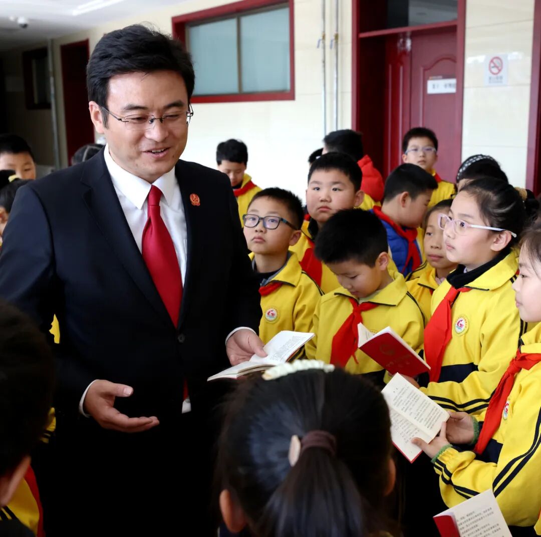 在普法课堂上,干警们向同学们赠送宪法单行本,带领同学们诵读宪法,向同学们讲解了什么是宪法、宪法的地位、宪法与未成年人的关系等多方面内容,将一颗颗崇宪守宪的种子播撒在孩子们心中。