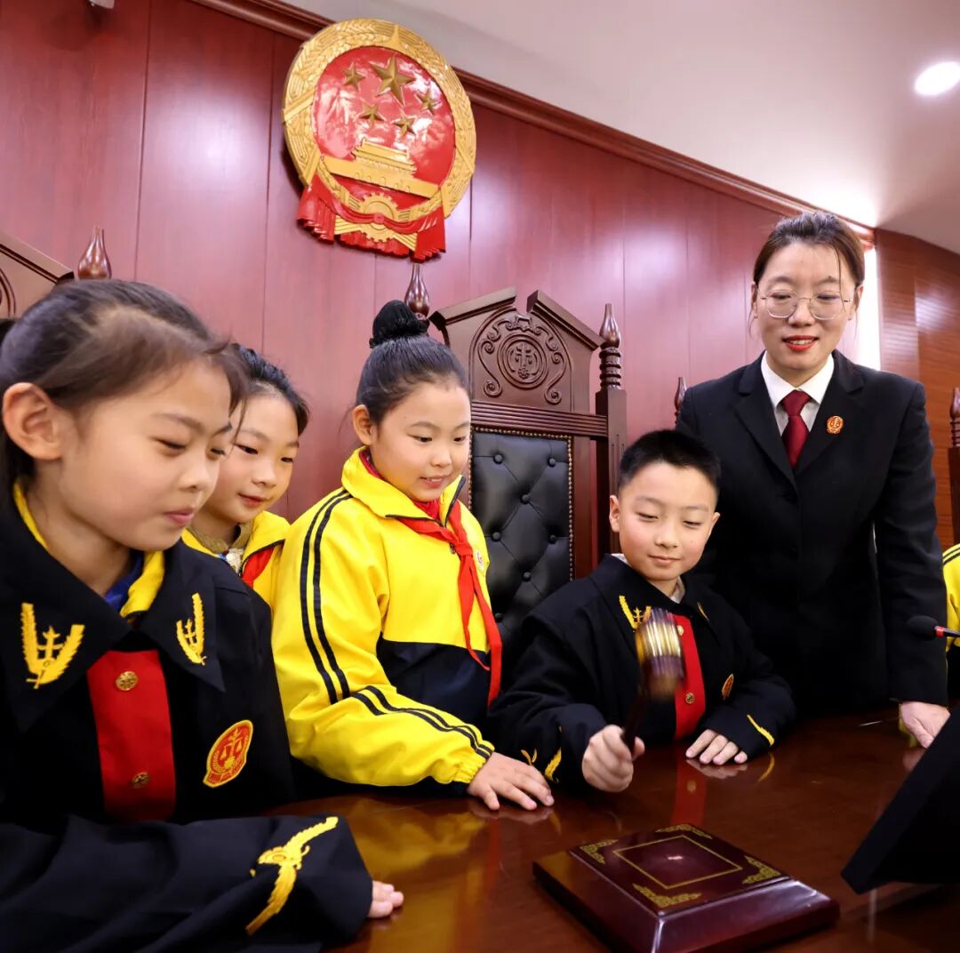 在干警的引导下,同学们先后参观了安检通道、立案大厅、审判庭等场所。“这是做什么用的呀”“审判是啥样的哇”......每到一处,好奇心和求知欲都驱使同学们争相发问,干警用通俗易懂的语言耐心解答。为了让“小客人”们直观了解法院工作,法官现场组织开展模拟法庭活动。严肃又紧张的庭审氛围让同学们在潜移默化中接受法治教育。