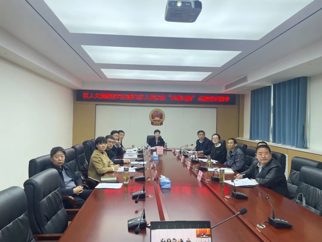 3月22日,市中区人大在区人大常委会机关四楼会议室举行“共享法庭”点案旁听庭审活动,观看区法院依法开庭审理的枣庄某公司请求撤销认定工伤决定书一案,区人大监察和司法委员会全体委员、常委会法工委全体成员、部分人大代表参加此次活动。