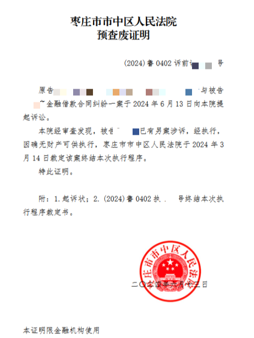 6月13日,市中区法院齐村法庭向某银行发出了全市首份《预查废证明》。相关银行可直接以此作为金融不良债务核销的依据,有效缩减了银行不良债务处置的经济成本和时间成本,有助于深化金融纠纷诉源治理,进一步优化辖区金融营商环境。 2024年6月,该银行因金融借款合同纠纷将王某起诉至市中区法院。在立案审查阶段,承办法官孙中胜发现王某已有作为被执行人的案件,且因名下无财产可供执行,法院均已裁定终结本次执行程序。为避免不必要的诉讼和执行程序,法官孙中胜向该银行出具《预查废证明》。 什么是“预查废”机制 针对信用卡纠纷和标的额为50万元以下,保证人少于2人的金融借款合同纠纷,法院在诉讼立案审查过程中,发现债务人因他案“确无财产可供执行”已作出终结本次执行程序裁定或已被列入失信人员名单的,可径行出具《预查废证明》。金融机构凭借该证明可直接向金融监管机构提出债务核销申请,从而高效率处置不良债务,避免对同一债务人进行不必要的诉讼和执行,减少“程序空转”。 《预查废证明》≠“免债金牌” 法院建立“预查废工作台账”,定期对该类债务人名下财产进行查控。若他案发现可供执行的财产或金融机构发现财产线索的,法院可通过督促程序等方式及时确认债权,并做好诉讼和执行的协调工作。 来源:市中区人民法院