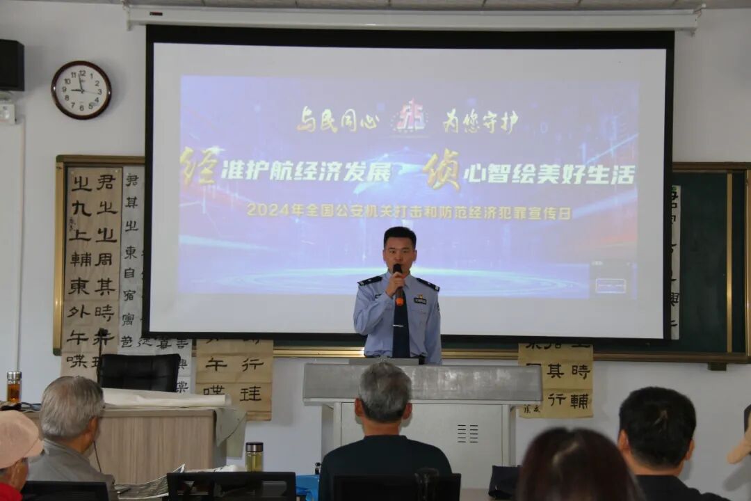 全国公安机关 打击和防范经济犯罪 宣传日 5月15日,是第15个全国公安机关打击和防范经济犯罪宣传日。为进一步提升群众识别和防范经济犯罪的能力,遏制经济犯罪蔓延态势,市中公安分局经侦大队联合区金融运行监测中心、区市场监督管理局、青岛银行、农商银行等金融机构,在大润发超市门前开展“与民同心,为您守护”打击和防范经济犯罪宣传活动。 期间,民警采取制作典型案例宣传板、悬挂宣传标语横幅、设立咨询台、发放宣传彩页、印制有宣传标语的小礼品等多种形式,重点围绕打击和防范非法集资、传销等涉众型经济犯罪,以及假币识别、燃气安全等相关知识,全方位向群众介绍经济犯罪形势和特点,剖析典型案例,揭示作案手法,传授防骗知识和自救技巧,提高群众防范意识。共计发放宣传材料500余份、接收群众咨询40余人次,推动社会各界共同维护良好的经济秩序。 随后,民警走进市中区老年大学宣讲法律知识,向与会的近百名老年同学细致地介绍了非法集资案件常见的表现手段和分辨方式,结合经侦工作的实际案例介绍了非法集资的危害和相关法律法规,告诫大家警惕高额回报的投资理财,保护好自己的钱袋子,赢得了老年朋友的欢迎和感谢。 来源:市中公安分局