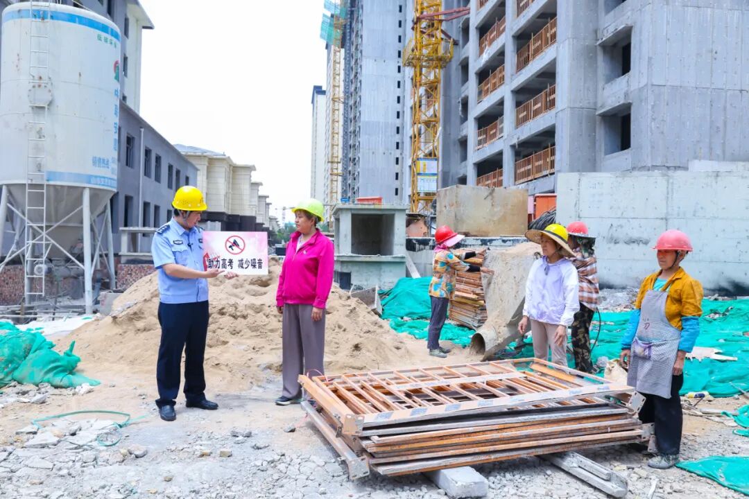 深入走访建筑工地,发放护考告知书,督促各单位合理调整作业时间和施工工序,认真落实环境噪声污染控制措施,为绿色护考工作营造良好的氛围。