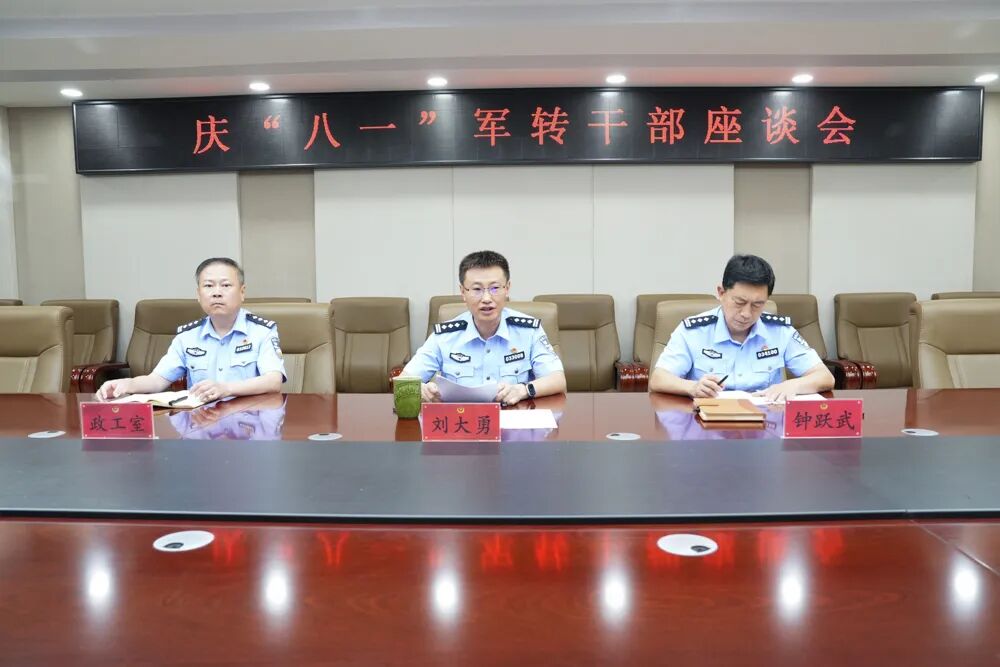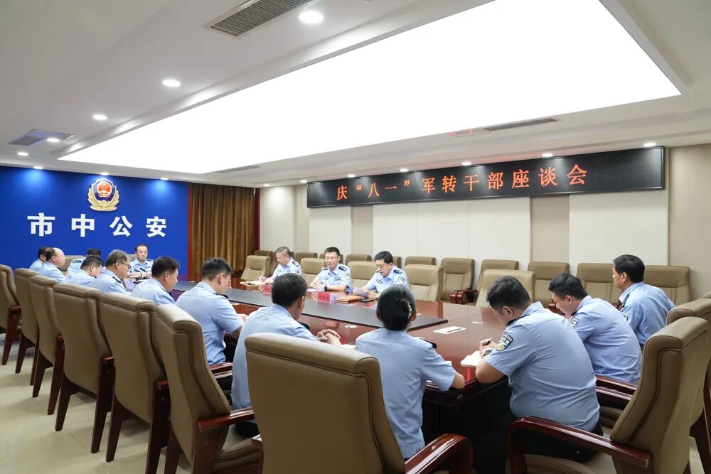 为庆祝中国人民解放军建军97周年,进一步提升公安队伍的凝聚力和向心力。7月30日,市中公安分局召开“庆八一”军转干部座谈会,分局党委副书记、政委刘大勇出席会议并讲话。会上,三名军转干部代表依次作交流发言,分享了各自部队经历,畅谈了入警后的切身体会,并展望了对公安工作的美好愿景,表示将继续发扬"退役不褪色"精神,继续弘扬忠诚、无畏、担当的军人作风,坚守为民初心,为公安工作再上新台阶做出新的更大贡献。刘大勇代表分局党委向全体军转民警致以节日的问候,要求继续秉承和发扬军人特别能吃苦、特别能战斗、特别能奉献的职业操守,做到干一行、爱一行,专一行、精一行。要把“军人以服从命令为天职”这张闪光的名片传承到工作中,自觉维护军转干部的形象,带头廉洁自律,依法依规履职,公正文明执法,为公安工作创新发展注入强劲动力。