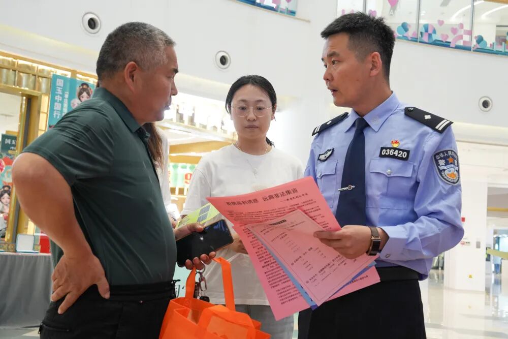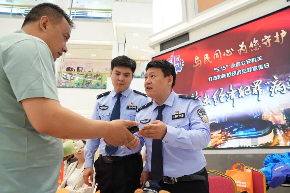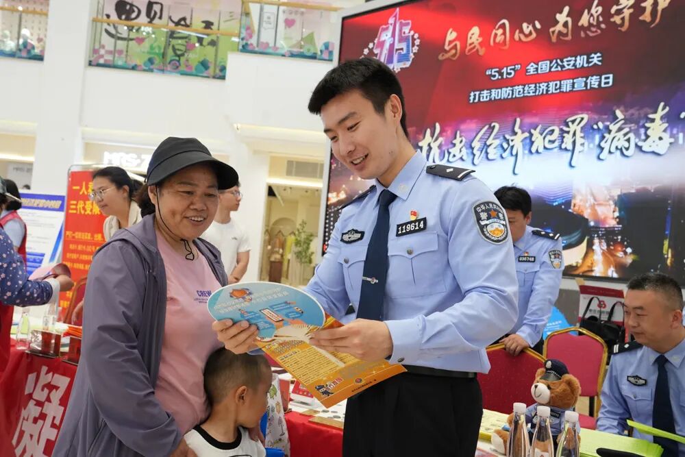 “经”住诱惑 “侦”惜拥有 守好百姓的“钱袋子” 是“5.15”不变的初衷 5月15日是第16个全国公安机关打击和防范经济犯罪宣传日,为预防和打击经济犯罪,进一步提升群众识别和防范经济犯罪的能力,充分展示市中分局打击和防范经济犯罪的成效,5月14日,市中分局联合中国人民银行枣庄市分行、区财政局、青岛银行等部门,围绕“与民同心,为您守护”的主题,在市中区吾悦广场开展“5·15”打击和防范经济犯罪宣传活动,市局领导、一级高级警长訾晋中,副区长、公安分局局长颜伟参加活动。 活动采取制作典型案例宣传板、悬挂宣传标语横幅、设立咨询台、发放宣传彩页、印制有宣传标语的小礼品等多种形式,重点围绕打击和防范非法集资、传销等涉众型经济犯罪,以及假币识别等相关知识,全方位向群众介绍经济犯罪形势和特点,剖析典型案例,揭示作案手法,传授防骗知识和自救技巧,提高群众防范意识。此次活动共计发放宣传材料600余份、接收群众咨询300余人次。 活动现场气氛热烈,市民们纷纷对这样的宣传形式表示肯定。接下来,市中公安将进一步调动社会各界和广大群众参与打击和防范经济犯罪的积极性,增强群众抵制经济犯罪侵害的意识和能力,营造全民防非打假的良好氛围。