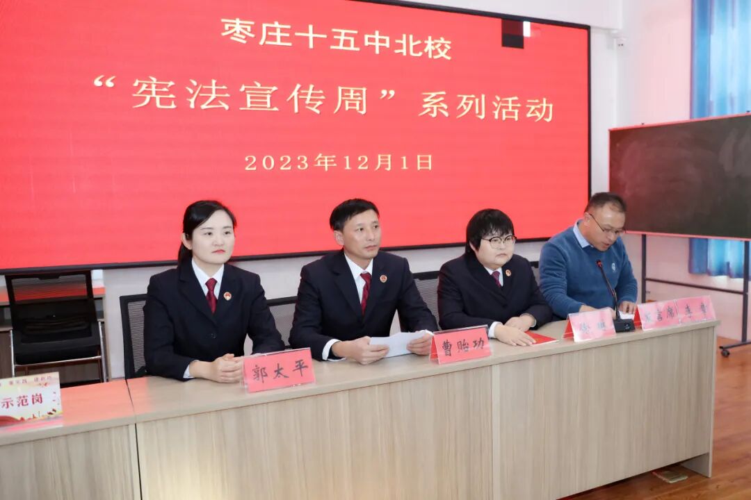宪法宣传周 把最好的守护“宪”给你 2023年12月4日是第十个国家宪法日,也是毛泽东同志批示学习推广“枫桥经验”60周年暨习近平总书记指示坚持发展“枫桥经验”20周年。为大力弘扬宪法精神,建设社会主义法治文化,坚持和发展新时代“枫桥经验”,让尊法、学法、守法、用法在校园蔚然成风,2023年12月1日,枣庄市市中区人民检察院未成年人检察工作办公室联合第一党支部走进枣庄十五中北校,开展了“宪法宣传周”进校园活动。 活动开始,第一党支部书记曹贻功给同学们送上了检察官的寄语,希望同学们充分了解学习宪法的意义,并号召同学们不负青春、不负时代,学习并弘扬宪法精神。 伴随着宣传片中婴儿的啼哭声,未检办主任郭太平以“宪法伴我成长”为题,向同学们宣讲了宪法作为我国根本大法,从出生到老去,从入学、工作、结婚到退休,在人生的每一个时刻对每一个中华人民共和国公民默默地保护和陪伴,教育同学们要学习与我们一生都息息相关的宪法,尊崇和维护宪法。同学们专注的听讲,沉浸式地学习了宪法的知识。 在对宪法有了初步的认识及了解后,检察官们代表市中区检察院向每一位同学赠送了《中华人民共和国宪法》读本,第一党支部委员徐琳带领同学们开启了“宪法晨读”。“第四十六条 中华人民共和国公民有受教育的权利和义务。国家培养青年、少年、儿童在品德、智力、体质等方面全面发展……”在检察官与孩子们朗朗的读书声中,手中的宪法读本将如身边的检察官一样,在今后的学习和生活中,默默地保护和陪伴每一位同学。 最后,为了加深和巩固同学们对宪法知识的学习和理解,检察官们在校园里利用“宪法知识大冲关”飞行棋游戏,和同学们一起挑战宪法知识掌握程度,“我国的国家宪法日是什么时候确立的?”“选A,选A,是11月1日……”同学们纷纷激动地抢答。这种寓教于乐的方式,让他们更加深入的学习并掌握了宪法相关知识,博得了同学们的一致好评。 此次“宪法宣传进校园”普法教育活动,不仅让学生们对宪法有了更加深刻和全面的认识,明确了自己的权利和义务,还提高了他们的法治素养,使他们更加懂得如何依法行事。同学们意犹未尽的表示,将积极学习法律知识,树立正确的法治观念,为营造文明、和谐、安全校园环境奠定坚实基础,为建设法治中国贡献青春的力量。 来源:市中区人民检察院