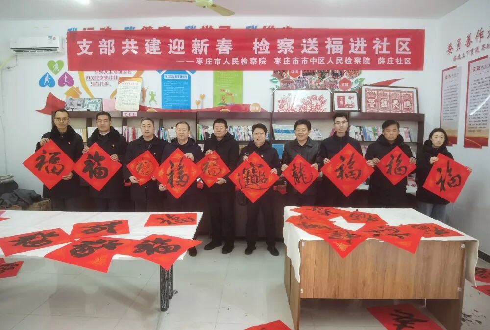 为进一步提升检察为民服务能力,发挥支部共建活动效能,促进机关与社区资源共享、优势互补,弘扬中华优秀传统文化,2月1日,市检察院第四党支部联合市中区检察院第二党支部、薛庄社区党支部共同开展支部共建暨“送福送法进社区”活动。屋内送福,各党员挥毫泼墨,“福”“龍”“春”跃然纸上,祝福满溢,情到社区,居民们驻足观赏,“看”“选”“拿”欢乐祥和,年味十足,暖在心头;屋外送法,“打击防范电信网络犯罪专项宣传”如火如荼,一张张反诈宣传单页和检察法律便民服务联络卡送到了居民手里,检察服务的触角也延伸到了群众身边。本次活动是党建与业务相融合的一次生动实践,加深了检察机关与社区的联系,拉近了党员干警与群众的距离。市检察院机关第四党支部将持续以支部共建活动为抓手,深入推进支部工作与检察履职相结合,聚焦刑检职能,深化检察为民,真正把“党建+业务”的融合成效体现到强化主责主业、保障民生民利的根本上,确保支部党建工作始终与全市刑事检察工作同向发力、同频共振、深度融合。