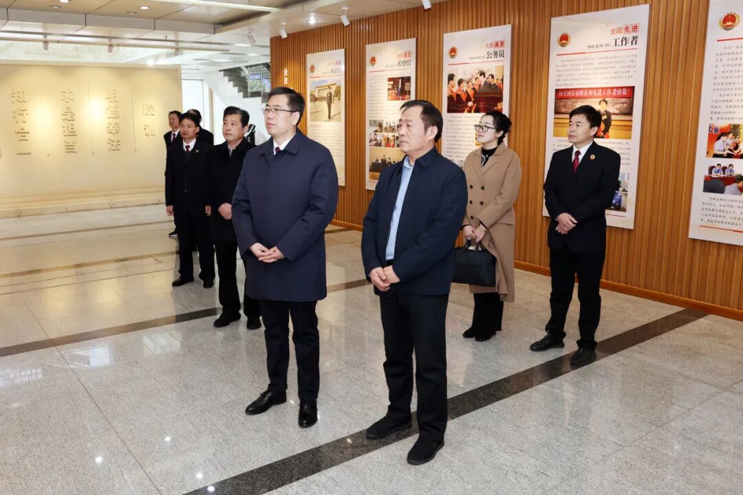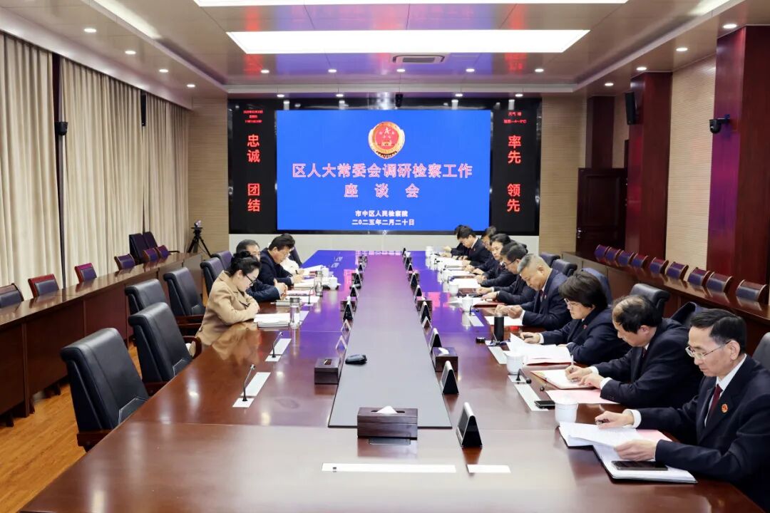 2025年2月20日上午,枣庄市市中区人大常委会副主任潘超等一行4人到市中区人民检察院调研。市中区检察院党组书记、检察长焦武峰,其他院领导及相关部门负责人陪同调研。 调研中,潘超副主任一行实地参观了市中区检察院党建教育基地,依次走进检察理念展厅、党史展厅、党建展厅、12309检察服务大厅、走进新时代展廊、法治时空展廊,沉浸式体验了法治文化的深厚底蕴和检察工作的创新发展。 会上,焦武峰检察长介绍了市中区检察院基本情况,汇报了2025年以来的工作情况,并就特色亮点工作进行了重点汇报。同时,双方就规范性文件备案审查工作、社会综合治理、未成年人保护工作等方面进行了深入交流。 潘超副主任对市中区检察院近年来的工作成绩给予充分肯定,认为市中区检察院班子强、队伍壮、业绩好,在服务大局、维护公平正义、积极参与社会治理、自觉接受人大监督等方面发挥了重要作用。他表示,将与检察院进一步加大联络和沟通,找准工作切入点,更好发挥人大在党和国家监督体系中的监督作用,在社会治理、公开听证等多方面加大协同工作力度,形成共识,共同做好监督工作。 焦武峰检察长对区人大常委会、各专工委长期关心支持市中检察工作表示感谢。他表态,市中区检察院将认真贯彻落实此次调研时提出的意见建议,积极做好与人大的衔接和对接,在人大的有力监督下,扎实开展检察工作,为市中区的法治建设和经济社会发展贡献更多检察力量。