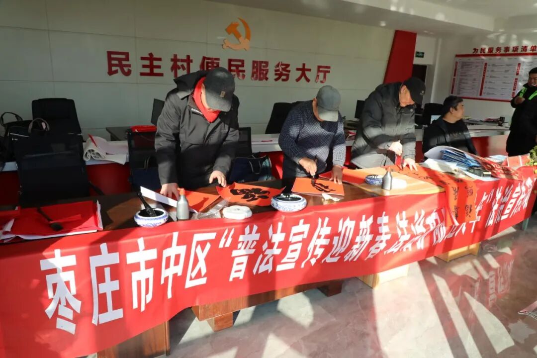 “法治春联”进万家,翰墨飘香送祝福。春节将至,为进一步弘扬社会主义法治文化,推进法治乡村建设,1月23日,市中区司法局联合市中区文联等多个单位走进西王庄镇民主村开展“法治春联进万家”活动。 活动现场,书法家们挥毫泼墨,写下了“法言法语”:“法治人和万户春 政通国盛千家福”“金龙报春万物生 法治天下四海平”“法语润春春常在 善心筑梦梦终圆”……一副副内容新颖、寓意美好的法治春联,不仅写出了对新春美好的祝福,也体现了艺术与法治的完美结合,在为群众送去新春祝福的同时,又把法治理念送进千家万户。“贴春联是咱老百姓的传统习俗,这些‘法治春联’将法治文化与中华传统文化巧妙地融合在一起,拉近了老百姓和法律知识之间的距离。”西王庄镇民主村村民崔某说道。 送“法”送“福”,年味十足。据了解,此次“普法宣传迎新春 法治护航过大年”系列普法宣传活动的举办,进一步激活了法治文化的内生动力,推动了法治惠民与文化惠民的落地见效,在潜移默化中增强了群众的法治思维和法治信仰。 来源:市中区委依法治区办、市中区司法局