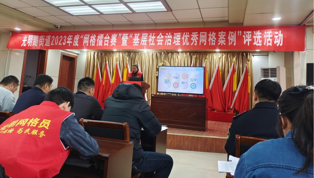 为夯实街道网格化服务管理工作基础,提高网格化服务管理质效和网格员业务能力,检验网格员业务知识水平和综合素质能力,激励网格员在工作中奋发有为、担当实干,形成比学赶超的生动局面。1月18日,光明路街道开展“网格擂台赛”暨“基层社会治理优秀网格案例”评选活动,街道党工委副书记、政法委员王元新、人大工作室副主任、三级主任科员邵燕、办事处副主任郝静语出席活动。这不仅是对网格员业务水平和良好风貌的一次集中展示,更是对网格员培养成果的一次大检阅。