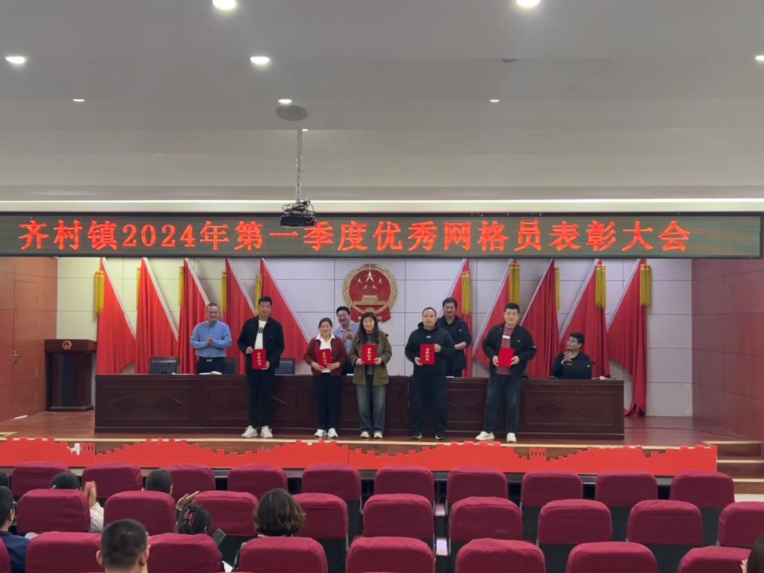 会上宣读了《齐村镇2024年第一季度月度“网格之星”、2023年度“优秀网格员”的决定》,对获奖网格员进行了表彰。