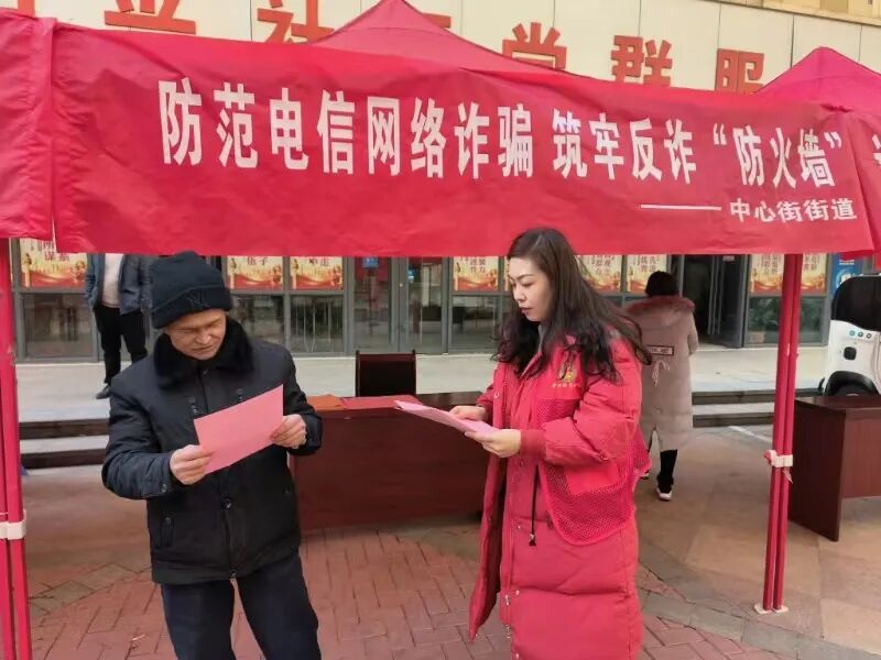 年关将至,为进一步提高群众反电诈能力,切实维护人民群众的财产安全。近日,中心街街道综治办联合社区开展“防范电信网络诈骗 筑牢反诈‘防火墙’”主题宣传活动。 活动现场,工作人员通过设立咨询台、悬挂横幅、发放宣传手册等多种形式,根据电信诈骗高发类型,积极宣传各类与居民日常生活密切相关的安全防范知识。同时,工作人员下沉到香港街商圈向商户、顾客介绍常见的诈骗手段和方式,提醒大家不要泄漏个人信息,并呼吁群众积极参与到防范电信网络诈骗的队伍中来,共同织密反诈防护网。本次活动共发放宣传手册100余份,现场答疑解惑10余次,受众近120人。 此次活动有效提高了辖区内居民对各类电信诈骗的识别能力,下一步,中心街街道将持续深入开展反电诈宣传活动,以宣促防,为维护辖区内居民财产安全,营造全民反诈氛围,推进平安建设保驾护航。 来源:中心街 忠心人