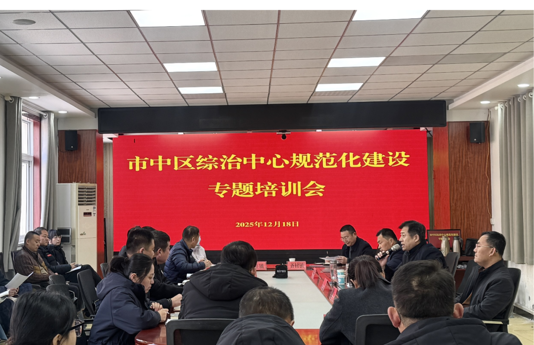 12月18日下午,市中区综治中心规范化建设专题培训会在区社会治安综合治理服务中心西二楼会议室举行。本次培训聚焦“学标准、重实践、抓重点、见成效”核心目标,持续推动全区综治中心规范化建设提质增效,进一步夯实基层社会治理根基。区综治服务中心全体工作人员、11个镇(街)分管负责同志及业务骨干参加。 参会人员集中学习了《乡镇(街道)社会治安综合治理中心规范化建设指引》《村(社区)社会治安综合治理中心规范化建设指引》等文件,通过逐条解读、重点标注,明确了综治中心规范化建设的核心标准与具体要求。为推动学用结合,中心街街道结合实践经验,系统阐述“全要素规范化建设”路径,重点围绕指引要求的场所设置、部门入驻、运行机制、督办落实、信息化建设、社会治安风险防控、工作效能等关键环节,分享了硬件设施完善、软件资料规范、制度机制健全的方法。 会议强调,各镇街及村(社区)要立足工作实际,在推进综治中心规范化建设中,按照工作指引同步抓好社会治安风险防控工作,协调推动社会治安整体防控体系建设、重点群体服务管理,积极组织开展群防群治工作,完善网格化服务管理,织密基层平安防护网。 会议要求,各镇街及村(社区)综治中心必须锚定“有标识、有阵地、有力量、有制度、有效果”的“五有”标准,按照时间节点高质量完成建设,层层压实责任,对于无法通过调解解决的事件,纳入法治化途径予以处理,形成工作闭环机制,确保各项部署落地生根。